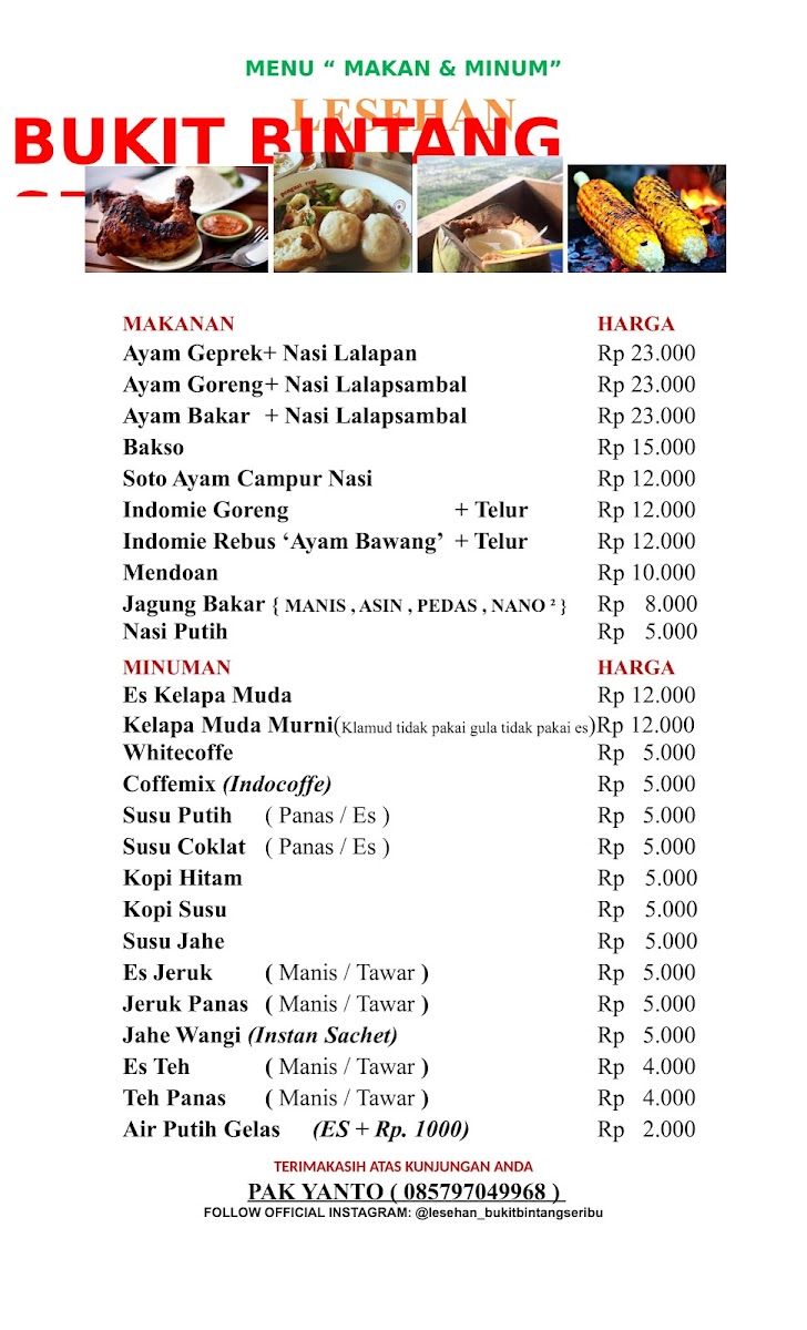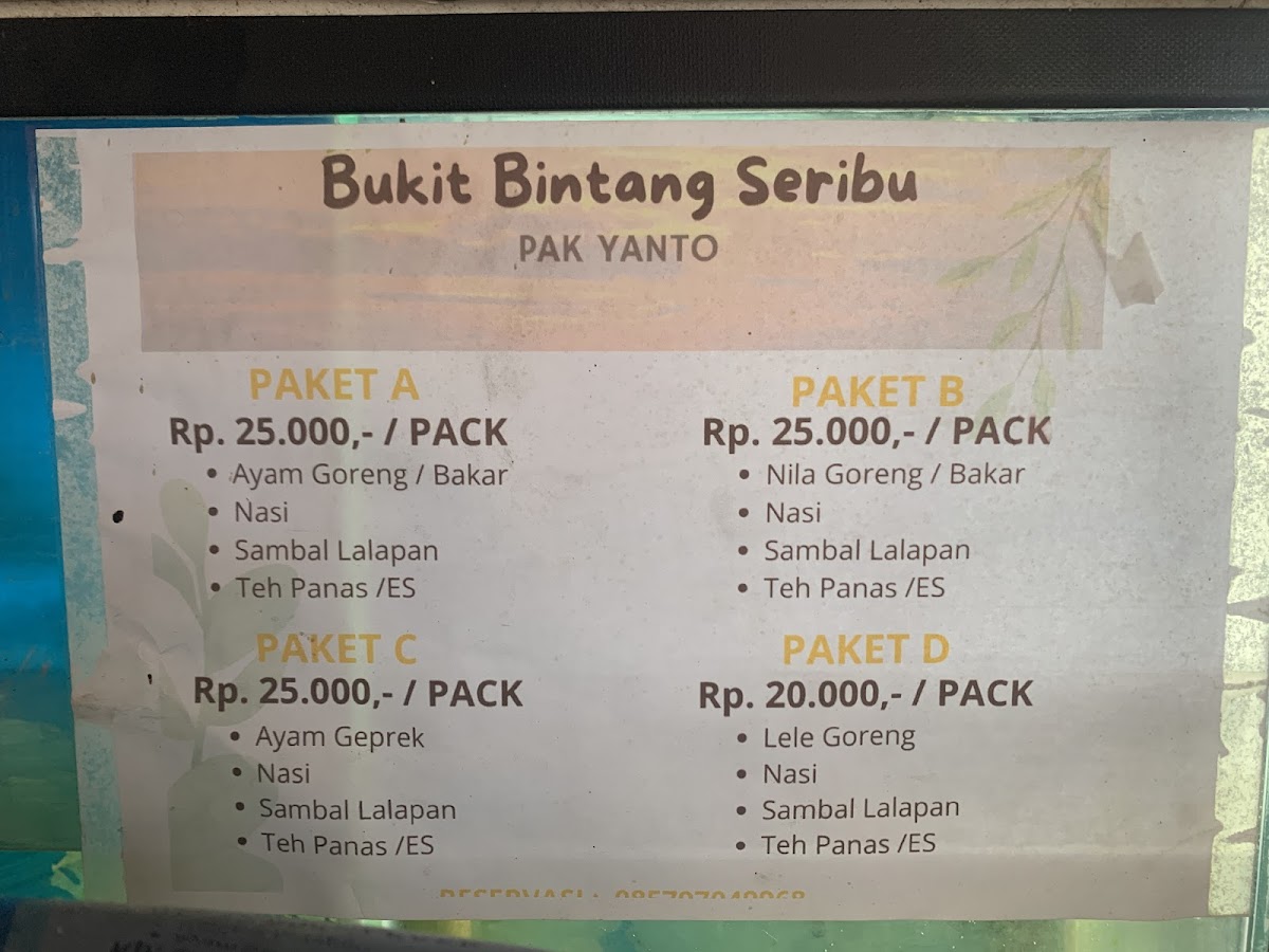 Welcome to Lesehan Bukit Bintang Seribu, a delightful cafe nestled in Kebun, Srimulyo, Piyungan. This gem offers a diverse menu that captures the essence of Indonesian culinary delights at affordable prices.